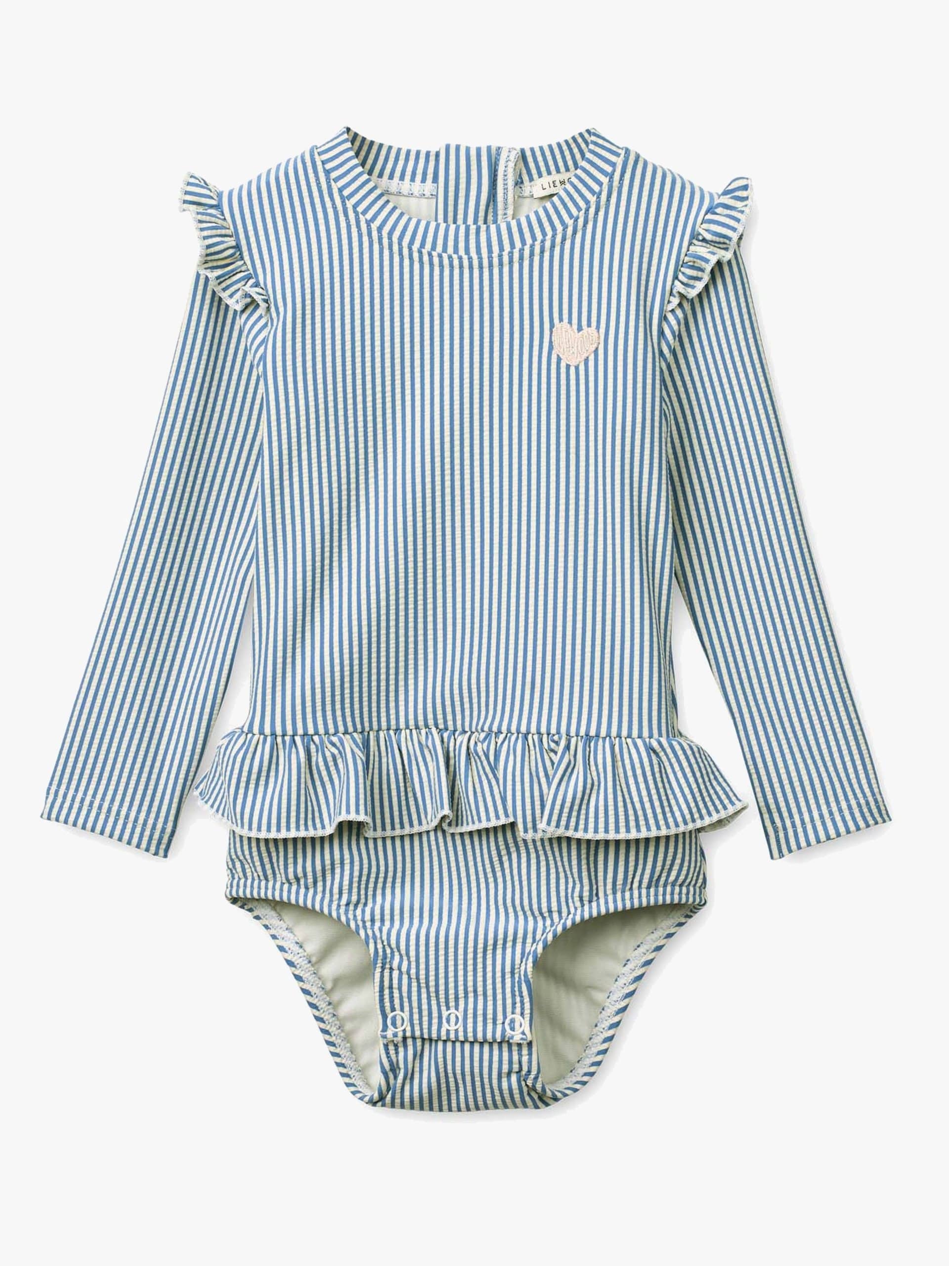 Sille badedragt fra LIEWOOD med UV-beskyttelse til at beskytte dit barns hud mod solens stråler. Den har lange ærmer og fine flæsedetaljer. Perfekt til solrige dage ved stranden eller poolen.